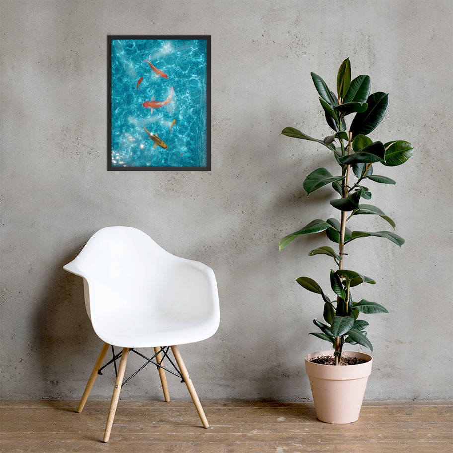 This digital creation of Koi gracefully swimming in a swimming pool transforms a common amenity in to a sophisticated piece of aquatic artistry. This digital abstract imbues any personal space with a sense of serenity and meditative beauty. The vibrant colours and tranquil movement promotes a calmness and luxury truly elevating any rooms visual aesthetic.